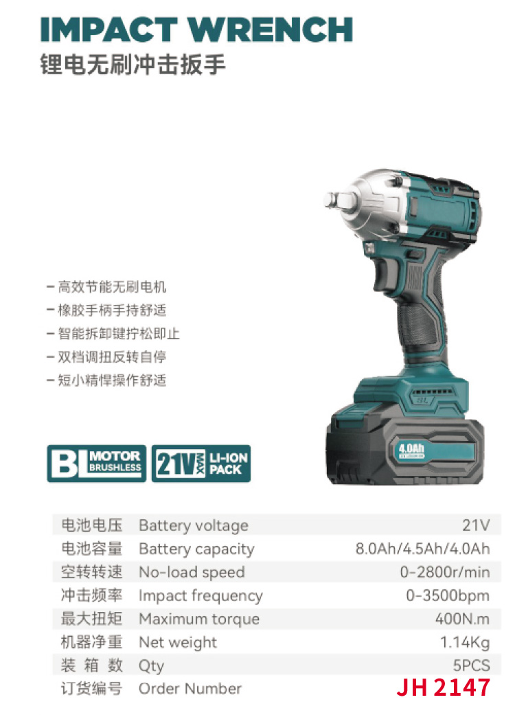 锂电无刷冲击扳手 JH 2147